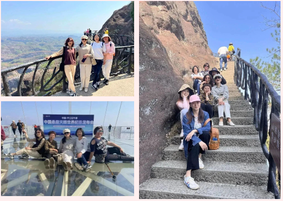 山勢陡峭而險峻,山上峭壁錯列,怪石嶙峋,巨石斜聳突兀似牛角,順南或北的險徑攀援而上,時而令人頭暈目眩,時而令人心驚膽顫。娘子軍們氣定神閑、鼓舞加油,順利通過“玻璃棧道”、“玻璃大橋”等懸崖景點,完成石牛寨一小步,征服內(nèi)心一大步。充分展現(xiàn)出長沙市政女職工激情拼搏、團結協(xié)作的精神風貌。